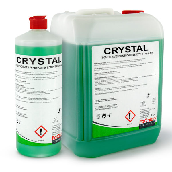 CRYSTAL is a highly concentrated product with a good polishing effect. It is used to wash dishes, glasses, household utensils, kitchen appliances, PVC surfaces, enamel, nickel, porcelain, lacquered wood and so on.